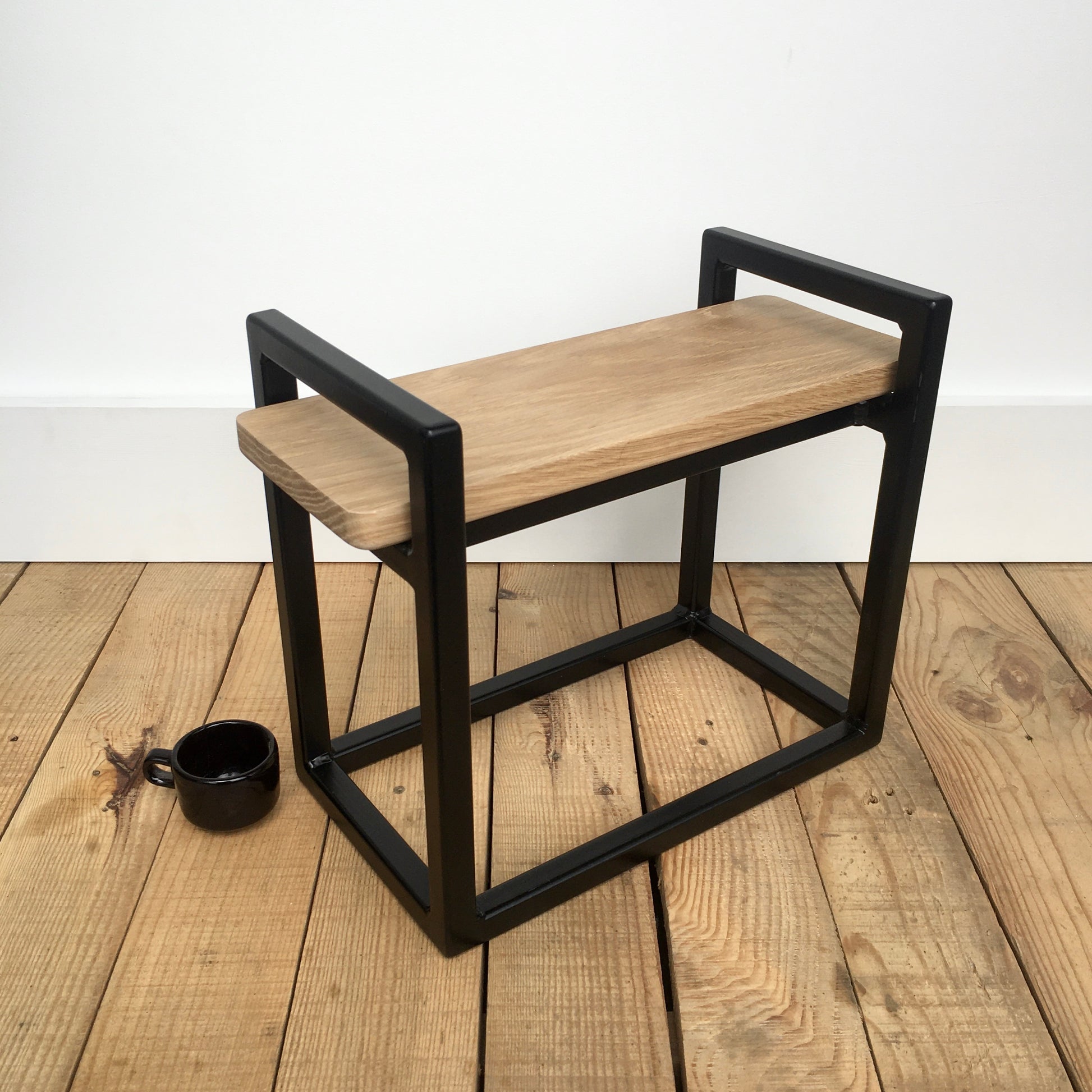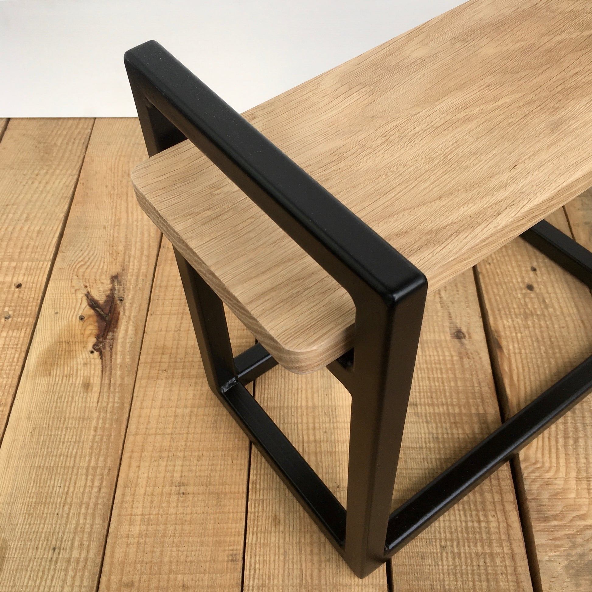 the stool is made up of a box section steel base in your choice of finish and a 40 x 15cm solid oak top.